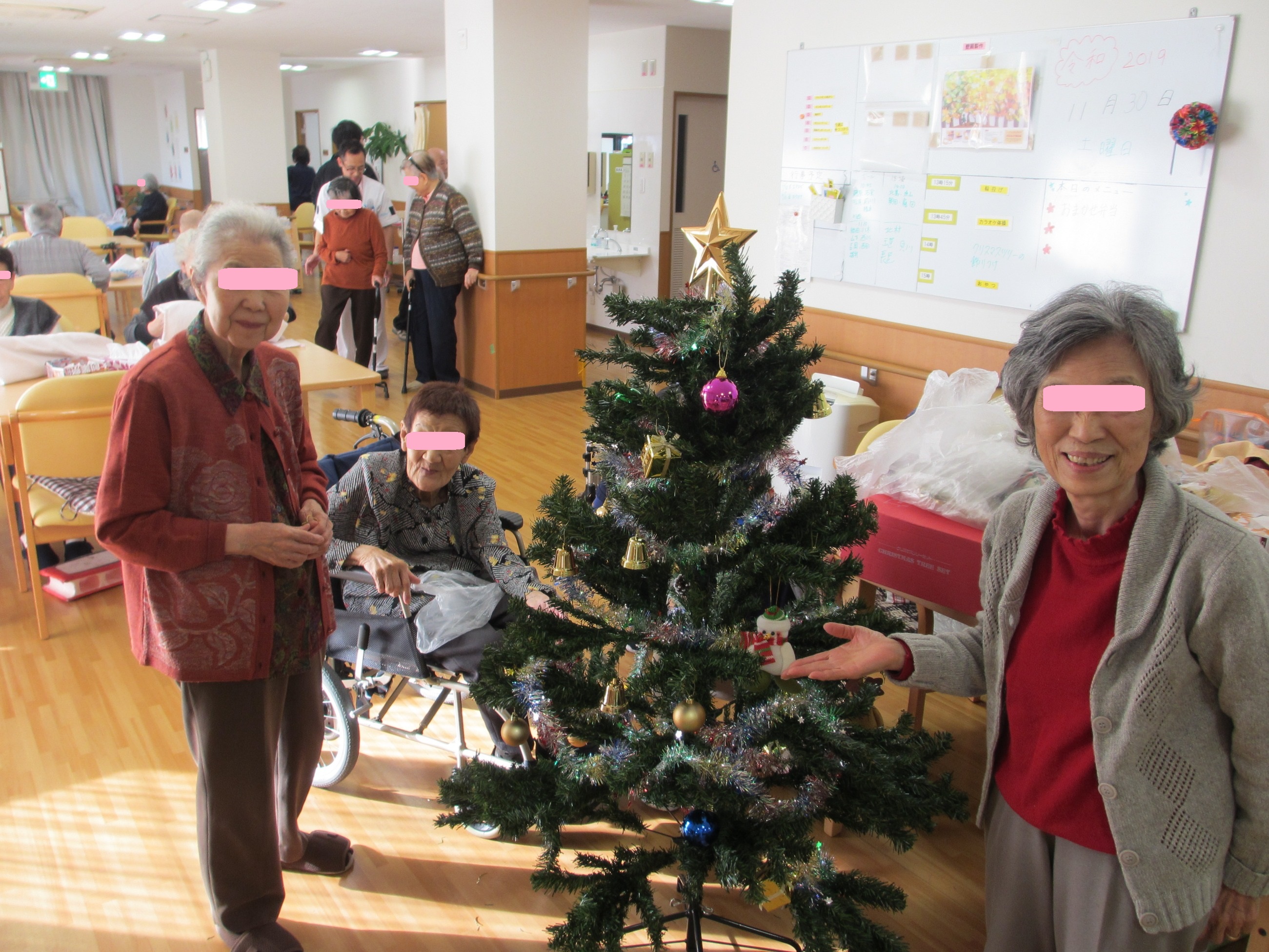 みんなで飾りつけしたツリーをp飾ってフロアが一気にクリスマスムードになりました