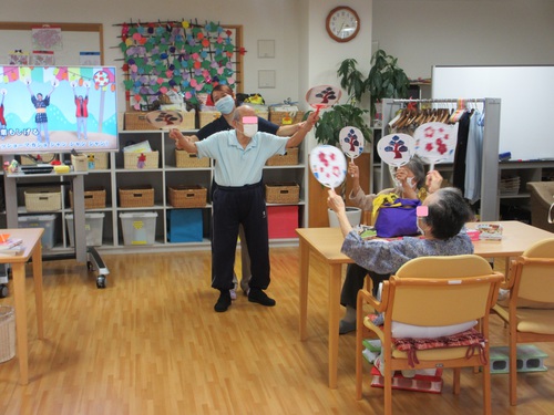 お昼の花笠音頭体操の時に、S様が先頭に立って踊ってくださいました