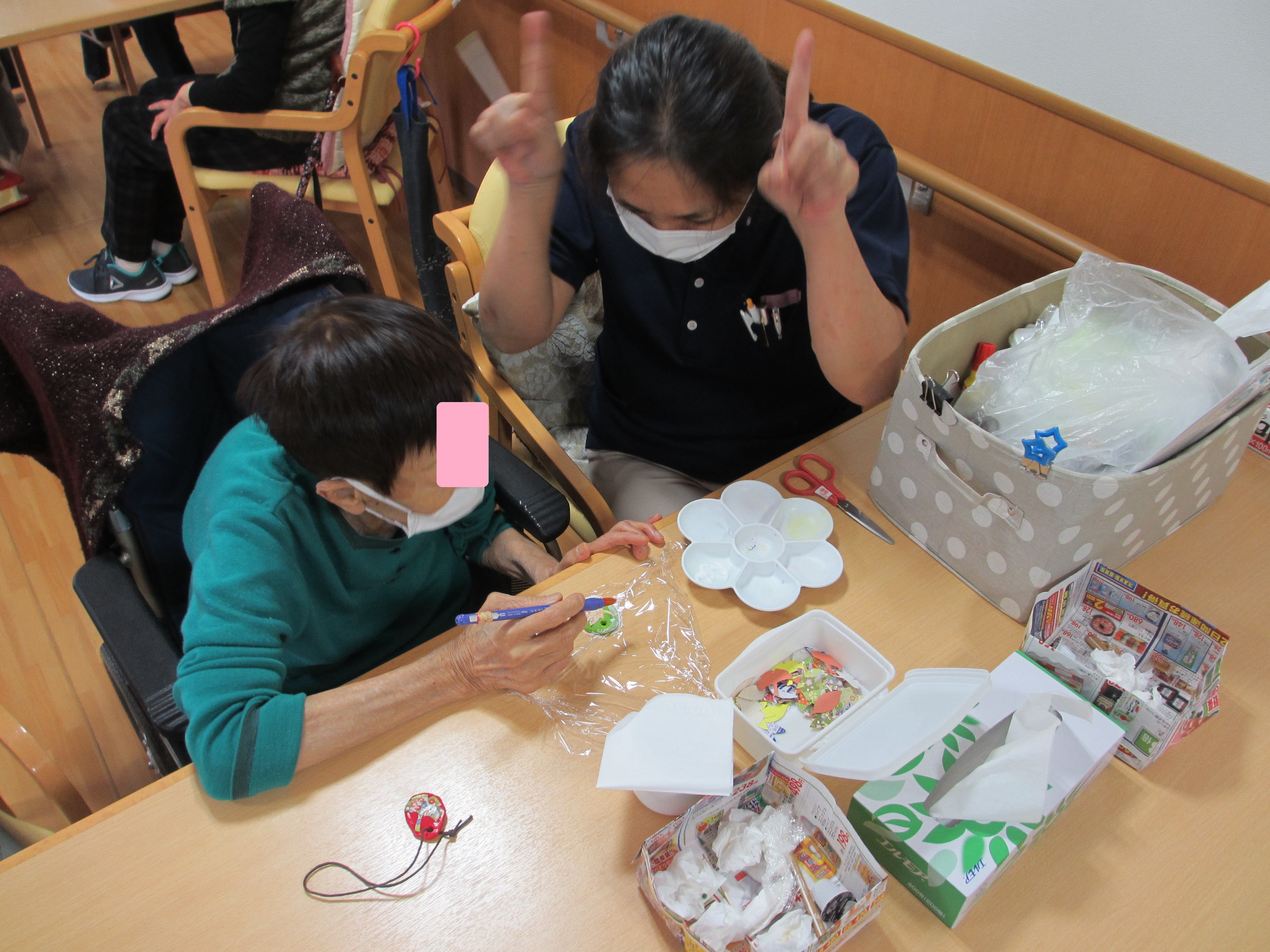 なにやら介護士さんが角を出していますね(笑)